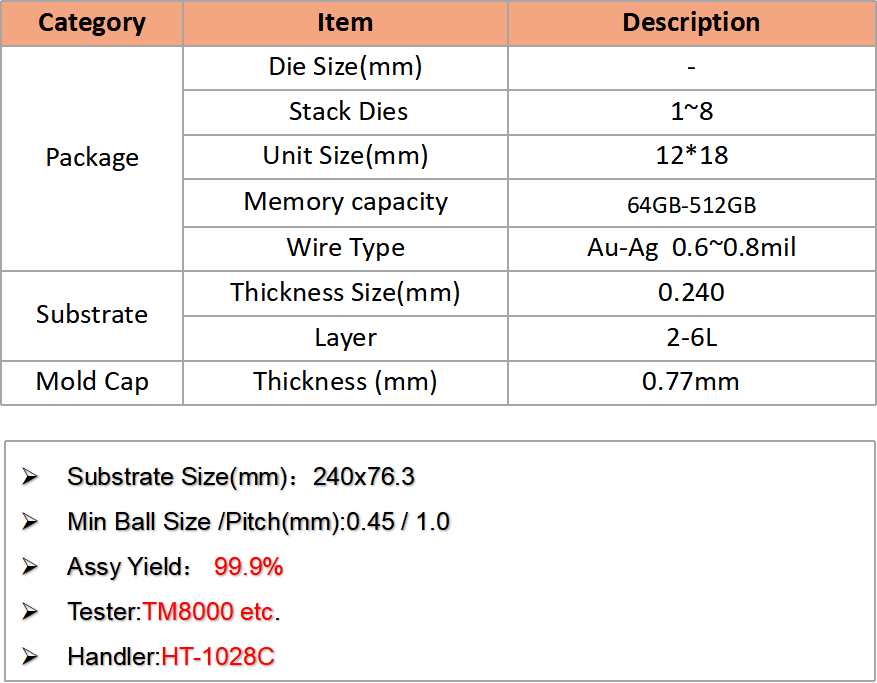公司憑借先進(jìn)設(shè)備、嚴(yán)格工藝控制和全流程服務(wù),可為客戶提供高可靠Memory芯片封測(cè)解決方案。