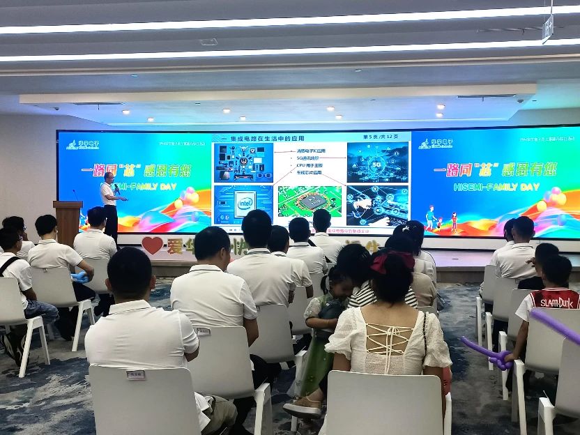 隨后,華宇電子研發(fā)部高級經(jīng)理王釗向家人們作半導(dǎo)體知識科普,為了讓孩子更加清晰了解什么是半導(dǎo)體,王經(jīng)理以身邊常用的電子設(shè)備為例,勾起了孩子們的興趣。他們認(rèn)真聆聽,時不時與家長互動溝通,一片幸福祥和景象。